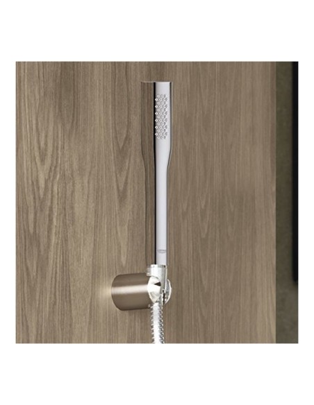 Η μπαταρία επιτοίχιας τοποθέτησης διατίθεται πλήρης με τη βάση επιτοίχιας τοποθέτησης τηλεφώνου ντους Tempesta 100 Cosmopolitan της GROHE, το τηλέφωνο ντους Euphoria Cosmopolitan Stick με μέγιστο ρυθμό ροής 9,5 λίτρα το λεπτό και τον σωλήνα ντους TwistFree GROHE Silverflex 1500 mm.