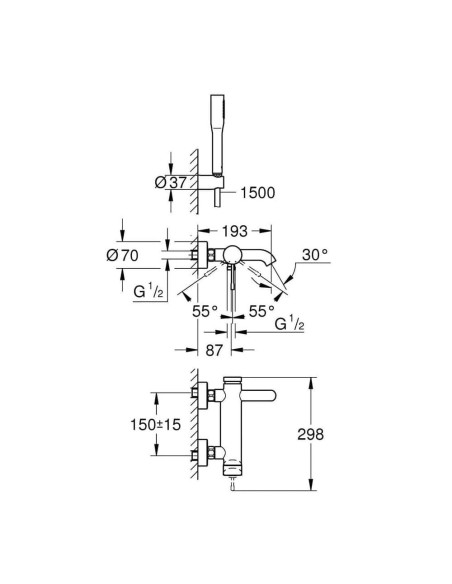 Επίτοιχη μπαταρία λουτρού - πλήρες σετ Essence από την εταιρεία Grohe.