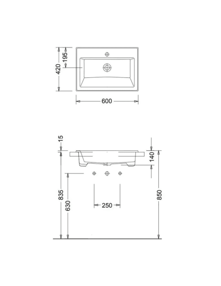 Serel Ένθετος Νιπτήρας Πορσελάνης 60x42cm Λευκός - 3042