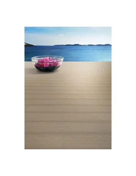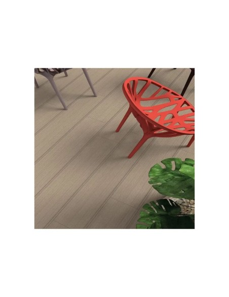 Η αυλακωτή σανίδα σε τρία διαφορετικά χρώματα συνθέτει μια μοναδική συλλογή έτοιμη να καλύψει οποιαδήποτε εξωτερική επιφάνεια, μεταδίδοντας όλες τις αισθήσεις του φυσικού υλικού, με τα ιδιαίτερα χαρακτηριστικά ενός πορσελανάτου προϊόντος.