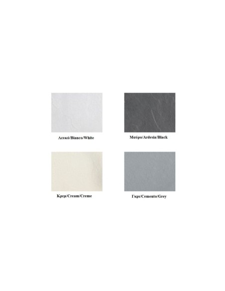 Διατίθεται σε τέσσερα διαφορετικά χρώματα: Λευκό Bianco, Ανθρακί Ardesia, Μπεζ Cream, Γκρι Cemento και σε πολλές διαστάσεις.