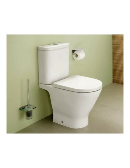 Λεκάνη τουαλέτας Gap Round της εταιρείας Roca, με καζανάκι και κάλυμμα soft close. Τοποθετείται στο δάπεδο και είναι ο πιο συνηθισμένος τύπος λεκάνης.