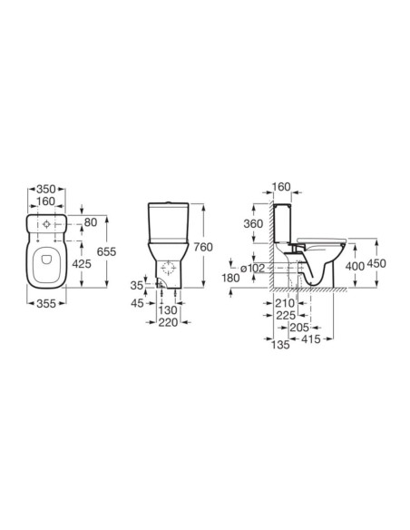 Η έξοδος της αποχέτευσης είναι στην πίσω πλευρά της λεκάνης, κάτι που σημαίνει ότι συνδέεται με σωληνώσεις που βρίσκονται στον τοίχο.
