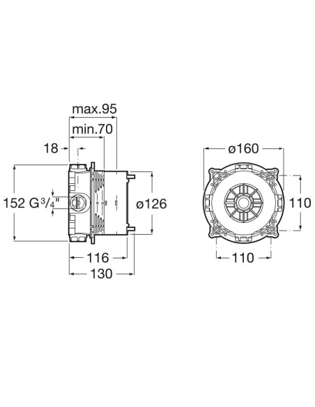 Roca Box κουτί για εγκατάσταση εντοιχιζόμενων μπαταριών (εσωτερικός μηχανισμός) Roca 2 εξόδων 1/2.