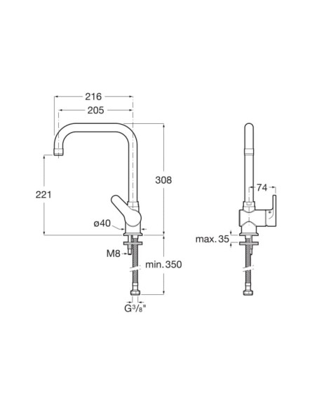 Η μπαταρία κουζίνας Arola της εταιρείας Roca, μπορεί να τοποθετηθεί είτε στον πάγκο της κουζίνας, είτε απευθείας στον νεροχύτη. Απαιτείται μόνο μία οπή για την εγκατάσταση της.