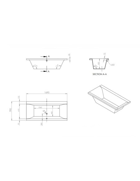 Ευθύγραμμη μπανιέρα Sunshine της εταιρείας Acrilan, διάστασης 180x80cm, σε μίνιμαλ σχεδιασμό. Η τοποθέτησή της είναι ένθετη και αποτελεί τον συνηθέστερο τύπο μπανιέρας. Η εγκατάσταση της γίνεται κατά κύριο από τοίχο σε τοίχο.