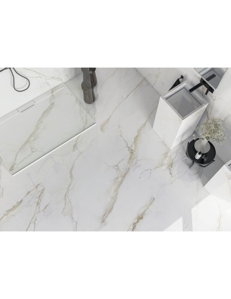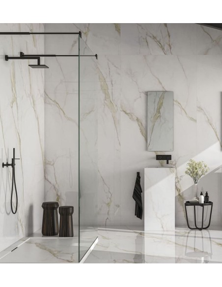 Οι χρυσές πινελιές σας επιτρέπουν να συνδυάσετε αυτή τη σειρά με πλακάκια με εφέ ξύλου ή πέτρας σε αποχρώσεις του μπεζ και του καφέ.